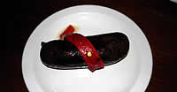 始めにきたチョリソは、パプリカが効いたスパイシーでやや辛いソーセージ。温かくてなかなか美味しい。真っ黒のブラックソーセージは、レバーの味がするやや重いソーセージだ。ちょっとクセのある味だな。
