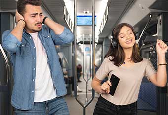 ヘッドホンをしていても音が漏れてヒンシュクを買うことがあるのでご注意を!